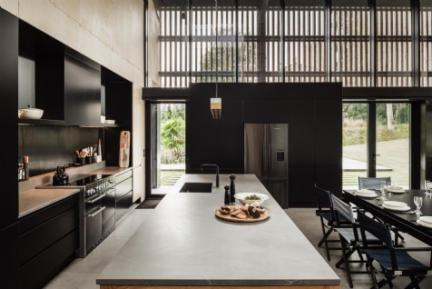A sleek kitchen serves as a centrepiece, blending form and function