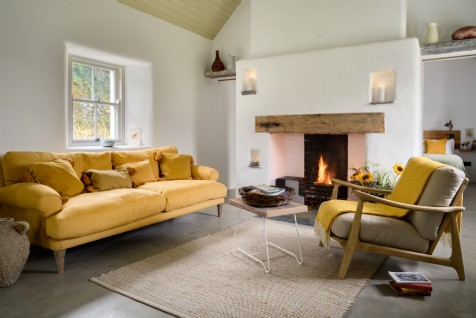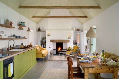 Tall ceilings and lime plastered walls give a faraway vibe to this Irish cottage