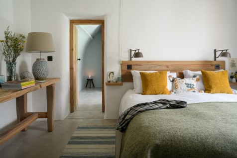 Light and organic, the bedroom continues the interior theme