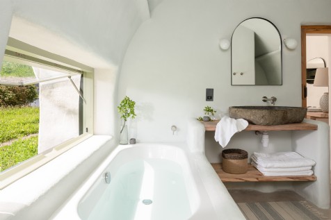 Merging inside and out, a window runs the length of the bath