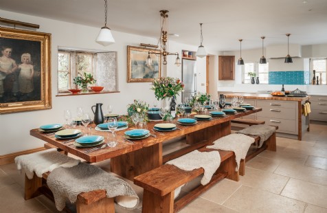 This open plan space is perfect for celebratory dinners, with hand crafted furniture throughout.