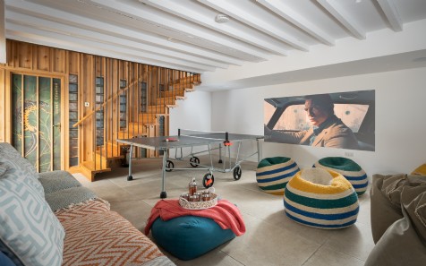 On the ground floor of the pool house bedroom eight enjoys a king-size bed has an en suite with shower and WC.