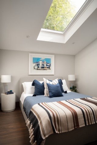 The master bedroom features a modern king-size four-poster bed and flaunts extensive views of the loch. This bedroom shares the family bathroom with bedroom two.
