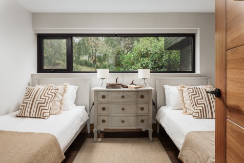 This cosy twin room has garden views and shares the family bathroom with bedroom one.