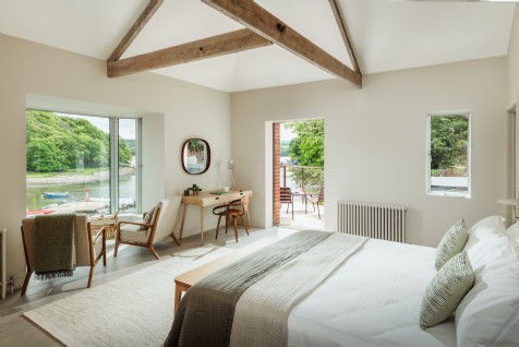 Many tides ago, a boat repair workshop stood on this waterside spot by the River Dart in Devon. One by one, the long-petioled willows, sessile oaks, and ancient yews of the woodland grew up, and Watermark became part of the forest. More than 200 years later, it’s been reimagined as a luxury self-catering riverside home, with large windows and a hot tub terrace. Just a short drive from the sandy beaches of the South Hams, as well as the shops and historic sights of Totnes, it offers an idyllic getaway.