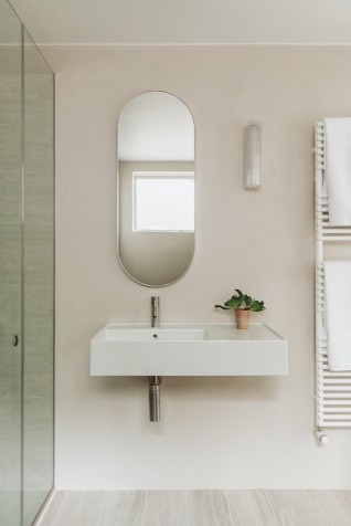 The clean-lined kitchen was designed by the owner and made in Newton Ferrers