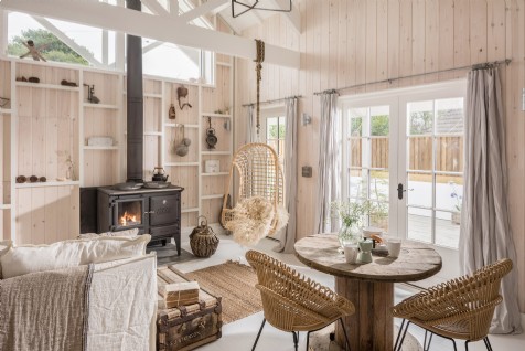 A clapperboard retreat settled in a quiet north Cornwall village, The Cotton Tree is just minutes from the rolling surf of Holywell Bay and Polly Joke beach. A fresh approach on coastal living, this luxury self-catering cottage is a place to soak in the hot tub with a glass of fizz under the midday sun and hunker down with the dog in front of the woodburner.
