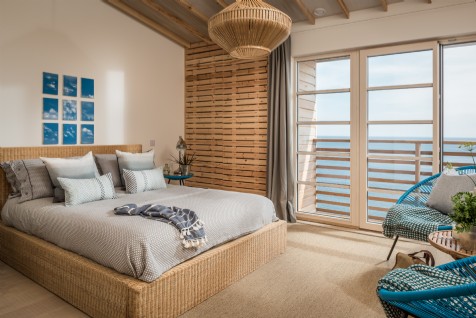 The third bedroom sits on the ground floor featuring ocean vistas and en suite shower room. Please note this room has double doors that lead to the living area.