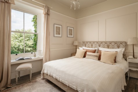 This tranquil first floor bedroom flaunts a super king-size bed and sits next door to the family bathroom.