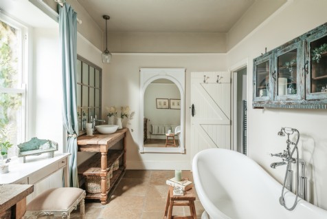 The first floor family bathroom has a slipper bath, separate shower, and his-and-hers sinks. There is also a separate WC on the ground floor.