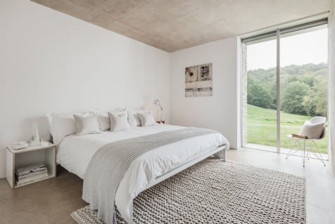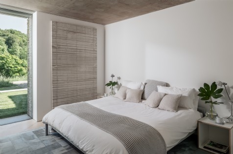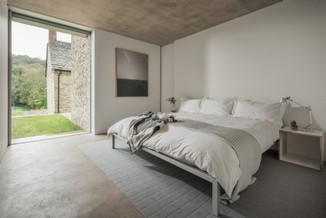 The sixth and final bedroom at The Find is this contemporary double, mirroring the other main house bedrooms with an emperor-sized bed and garden views.