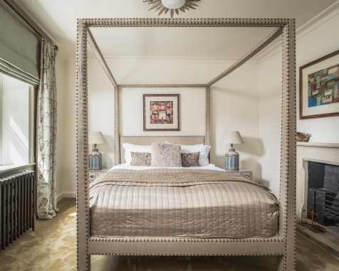 The first floor is home to the second king-size bedroom with unique four poster bed and an en suite shower room.